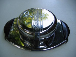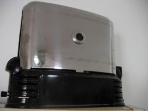 This is the gem of my collection, a 40s-era “Toast-O-Lator” that toasted bread by moving it in one side and out the other, on a conveyor belt. (The faster the belt was set to move, the lighter the toast came out.)